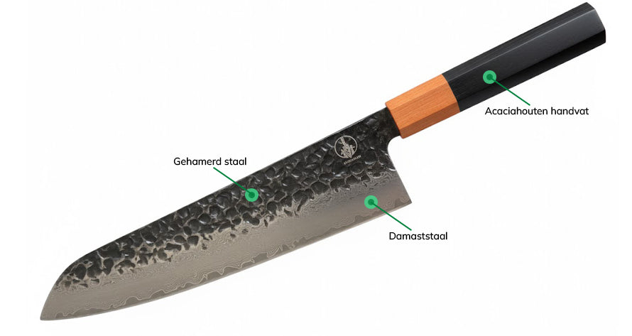 Onze messen zijn gemaakt van 67-lagen hoogwaardig damaststaal.
